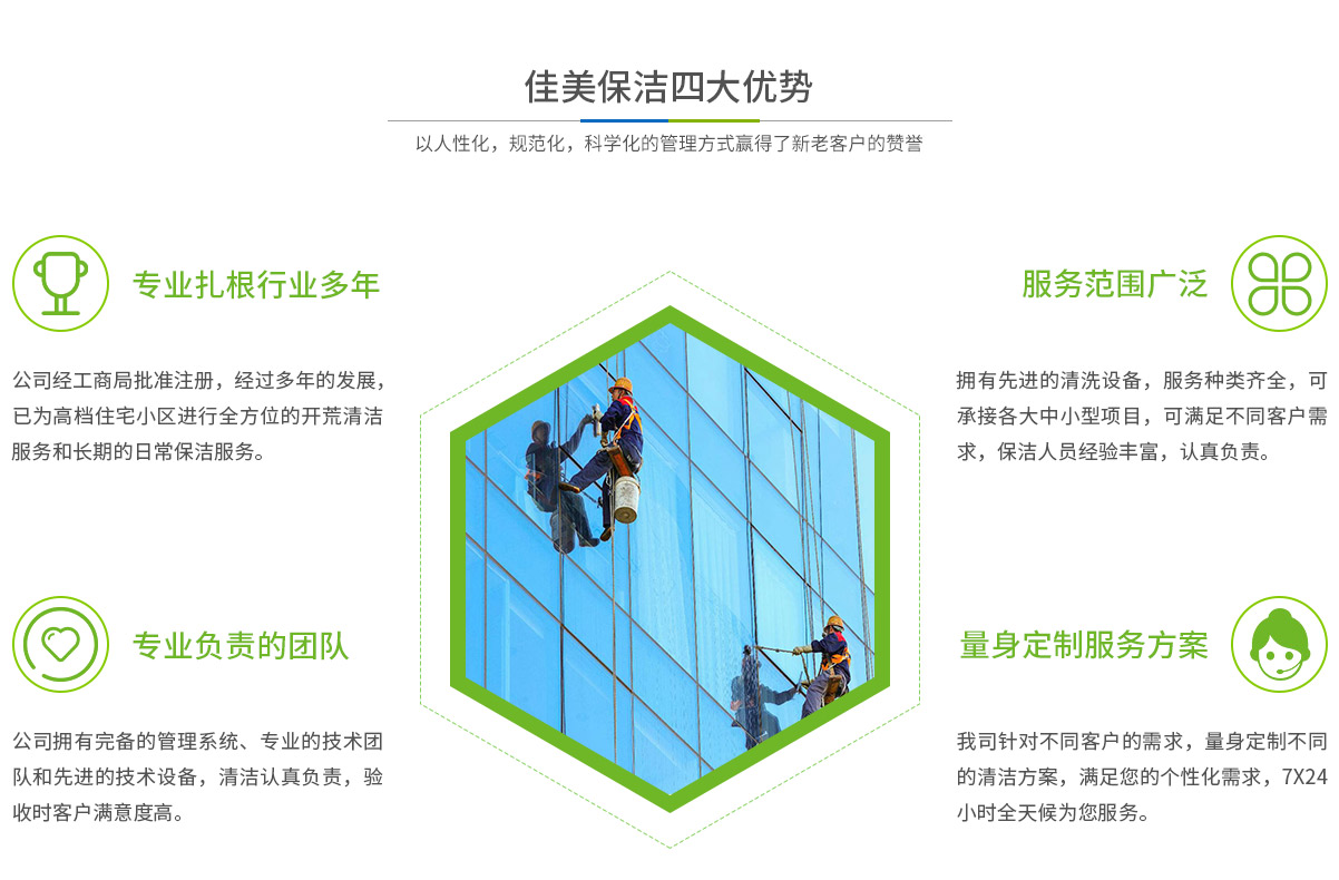 马鞍山市佳美保洁服务有限公司是一家经工商部门批准,具有法人资格专业清洗,马鞍山保洁服务的公司,自创办以来,一直致力于企业,家庭,宾馆,学校,别墅,酒店,商厦,公共设施等场所提供科学的日常保洁和清洁?;さ姆窆?,有着丰富的管理服务和保洁经验...